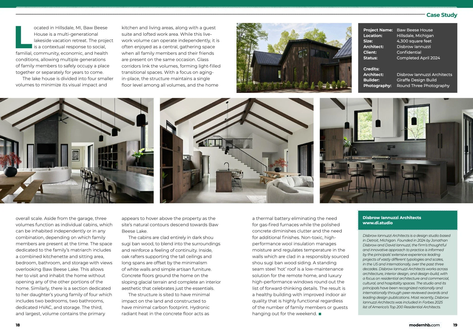 Baw Beese House has been featured in Modern Home Design’s December 2025 issue. The article discusses the four distinct structures to reduce visual impact while allowing multiple generations of the same family to live together, either collectively or independently, over time.