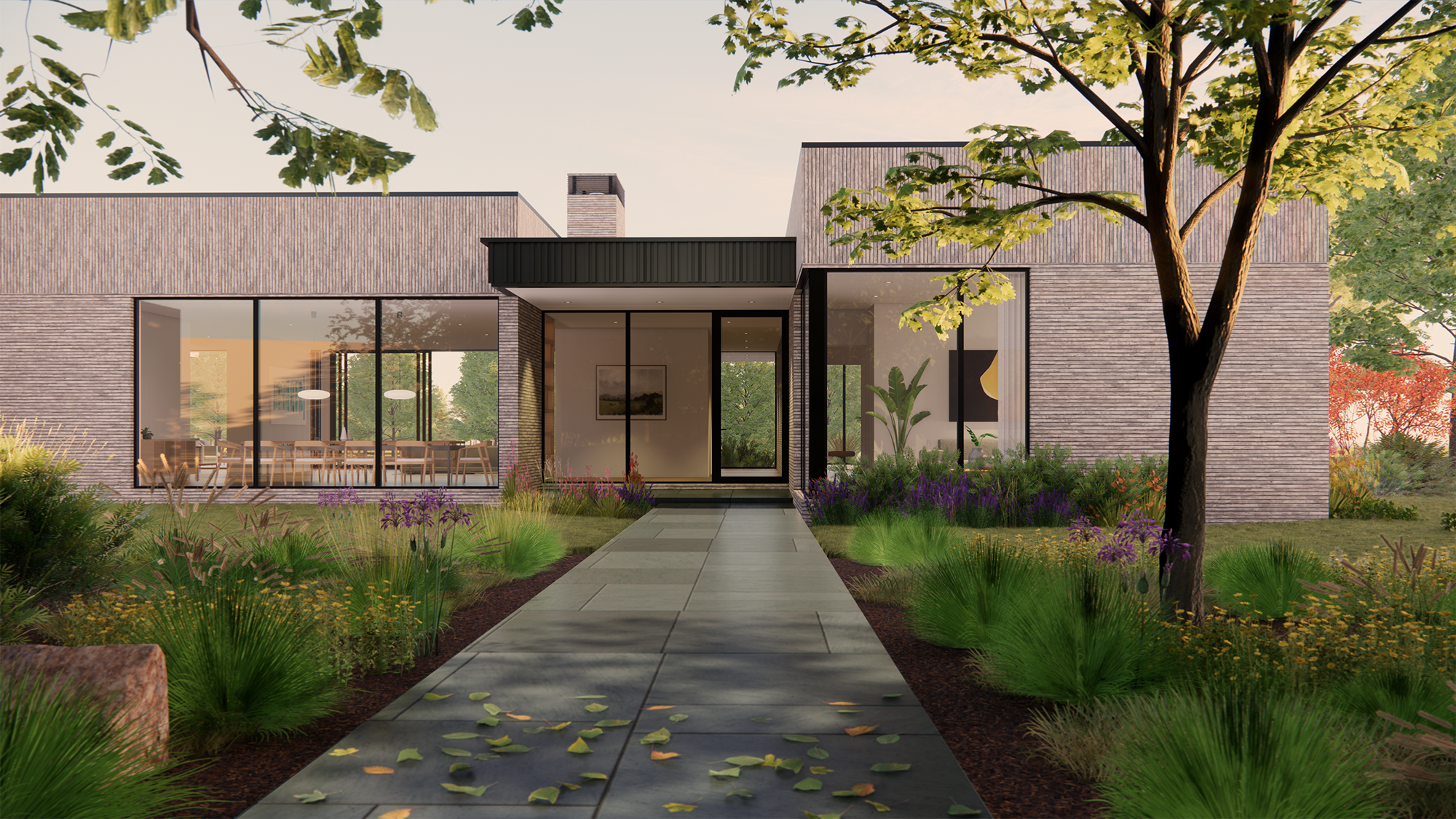 The home is nestled in a clearing among the existing vegetation to minimize disturbance to the site. The lake and surrounding property are on view throughout the house through dedicated view corridors.